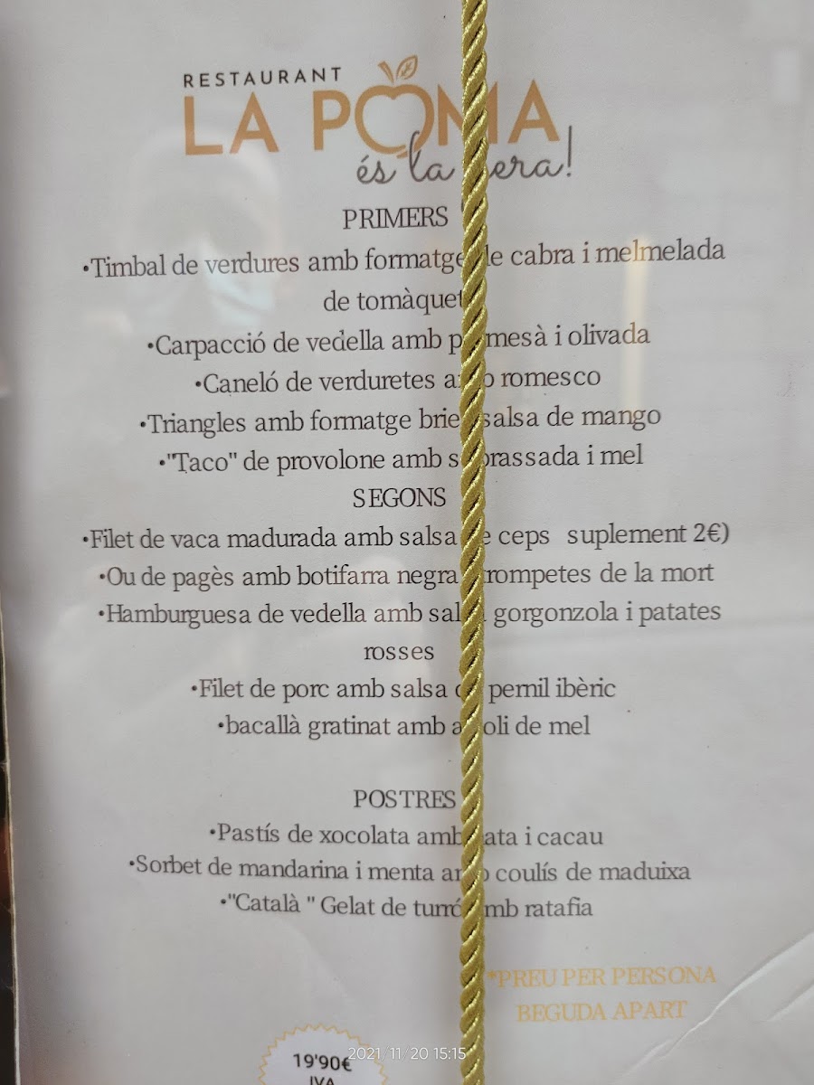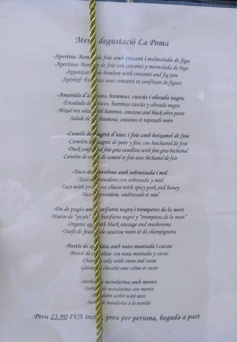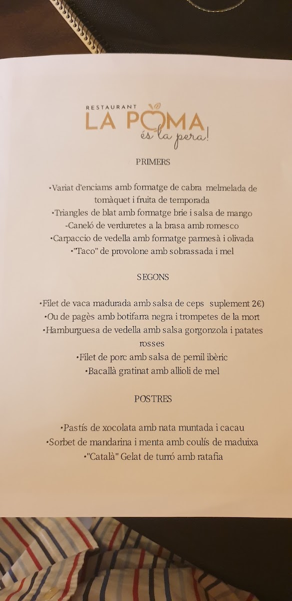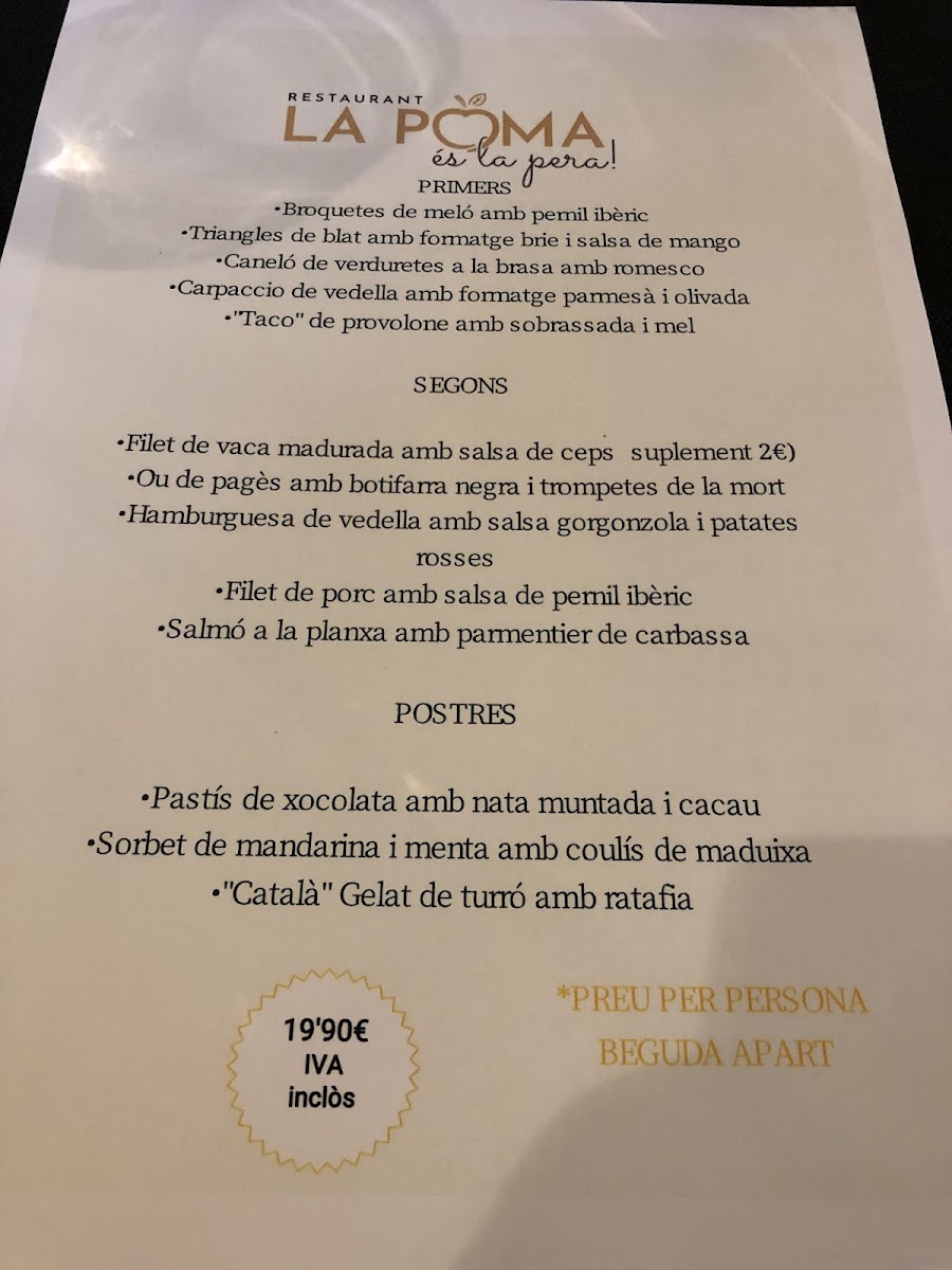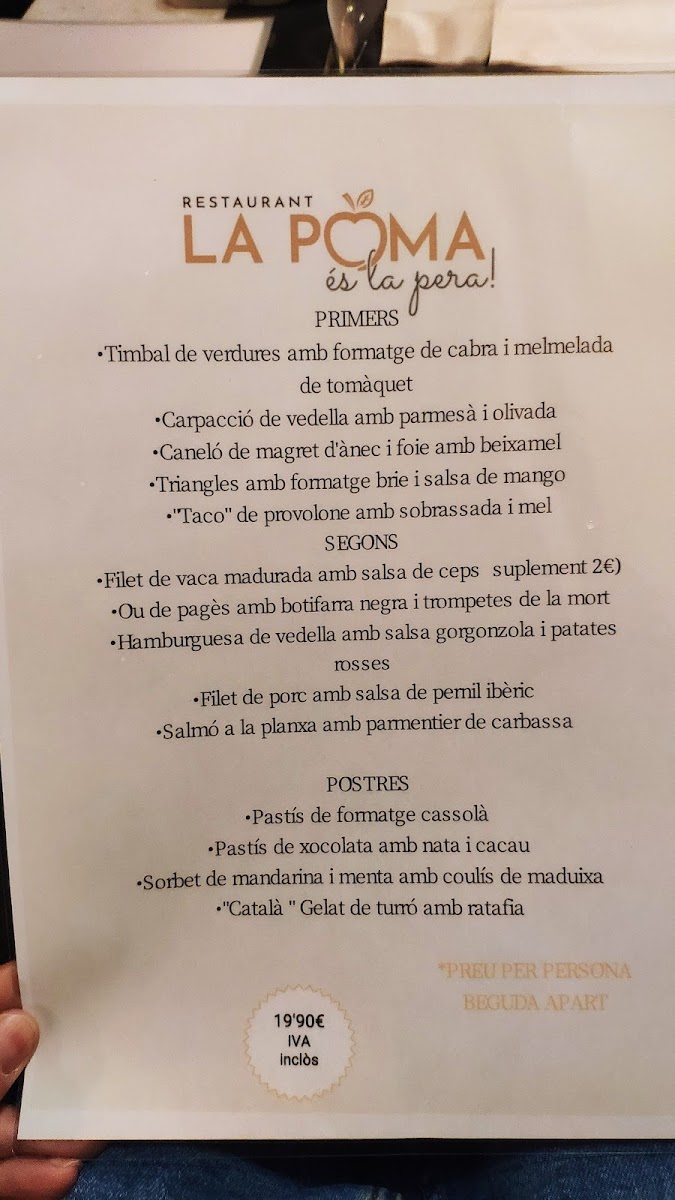 The restaurant balances tradition and innovation, serving delightful starters and main courses that celebrate local ingredients and regional wine pairings, like the fine vino de la Terra. The desserts and accompanying drinks provide a perfect, indulgent finale. With a welcoming atmosphere, attentive service, and a soothing ambiance enriched by subtle music and aromas, La Poma es la pera Girona promises a memorable culinary journey worth revisiting in Spain’s vibrant Girona.